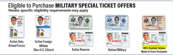 Exclusive tax-free military discount tickets for eligible patrons!